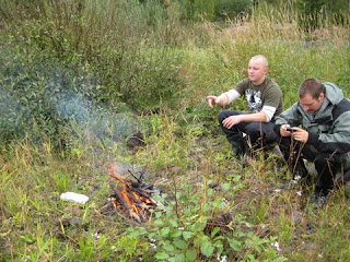 Dag 2 vaknade man av regnet som fortfarande slog mot tältduken. Lite orolig över det tog man en öl å nå´n whiskey till frukost och mulade ner en knäckemacka.