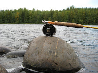 Första fiskedagen var helt ok, vi hade sällskap av några andra som bodde på andra sidan älven som hade fiskat några dagar. Dom gav oss några tips om flugor å så.
