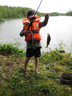 Var ut på Brilldammen med Johanna idag å lurade några abborrar på flugspöt... William fick sin första fisk på kastspö, en rätt fin abborre som han är as stolt över. Drog några abborrar å löjor på E12 an, men inga giganter som det brukar komma upp i den där sjön, bara pluttar.